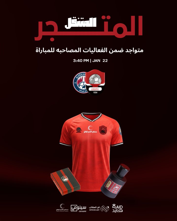 كرة القدم 🧰 | تواجد متجر #الرائد في مقر فعاليات لقاء نادي الرائد 22 Jan 07:09 am 🧰 | تواجد متجر #الرائد في مقر فعاليات لقاء #الرائد_العدالة 🎒 منتجاتنا متوفرة لجمهورنا @alraedclubstore